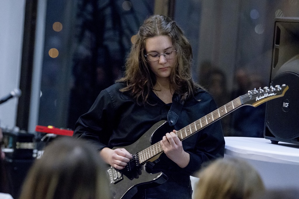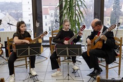 Třebíč. Divadlo Pasáž – foyer. Žáci a učitelé strunných nástrojů – organizace koncertu Mgr. et Mgr. Martin Pašek.
