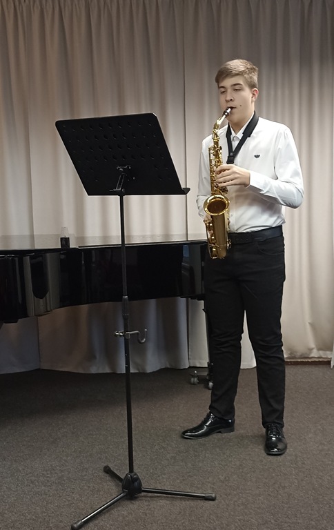 Koncertní sál ZUŠ. Masarykovo nám. Školní kolo soutěže ve hře na dechové nástroje.