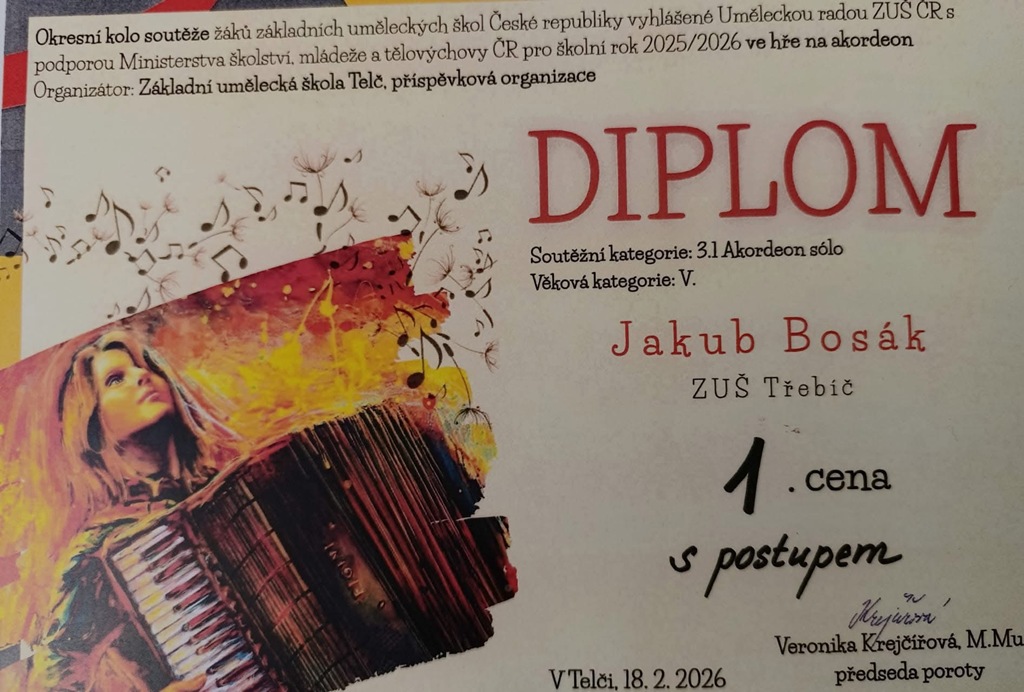 ZUŠ Telč. Okresní kolo soutěže ve hře na akordeon.