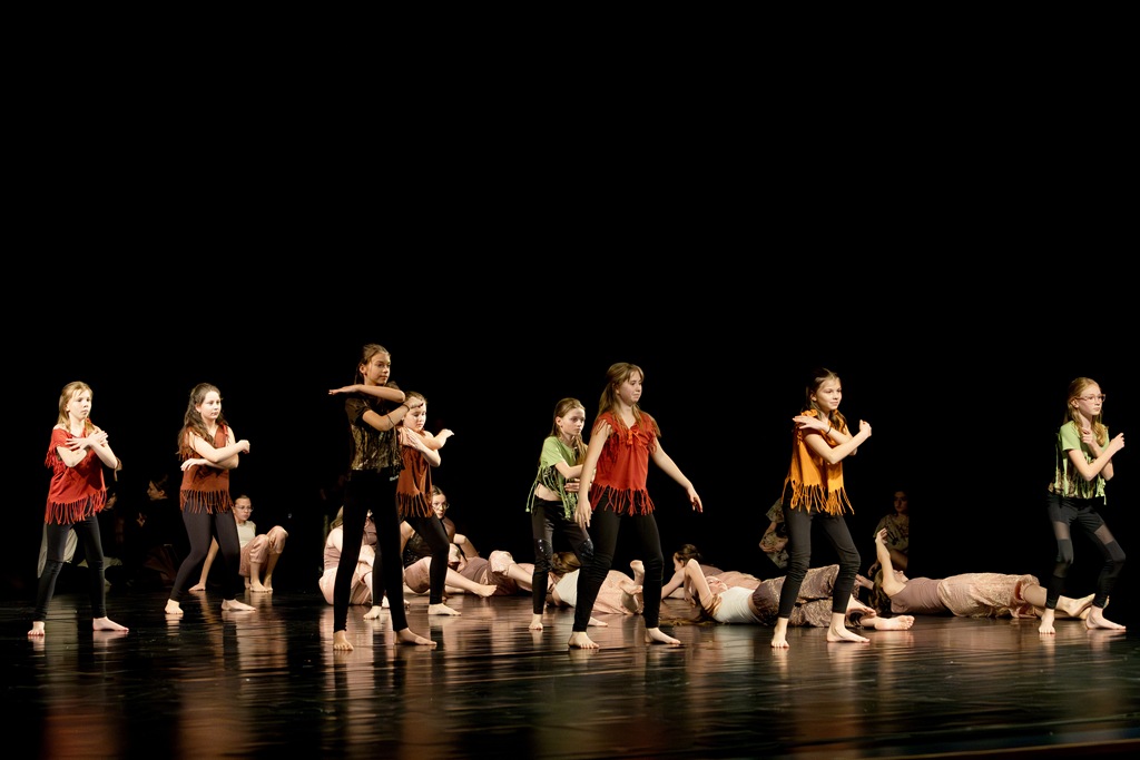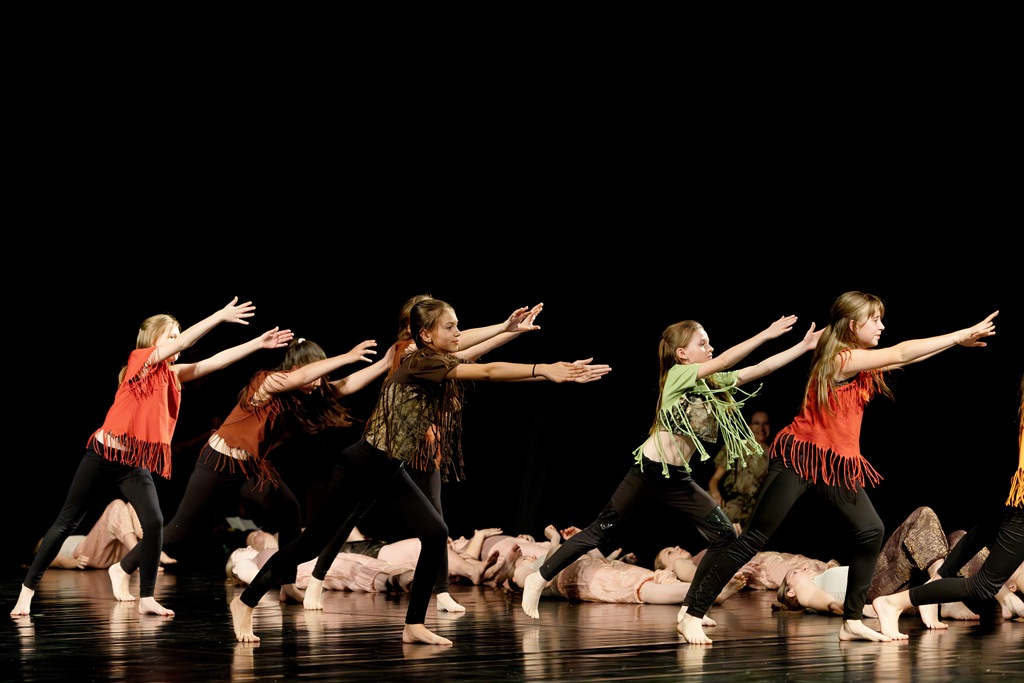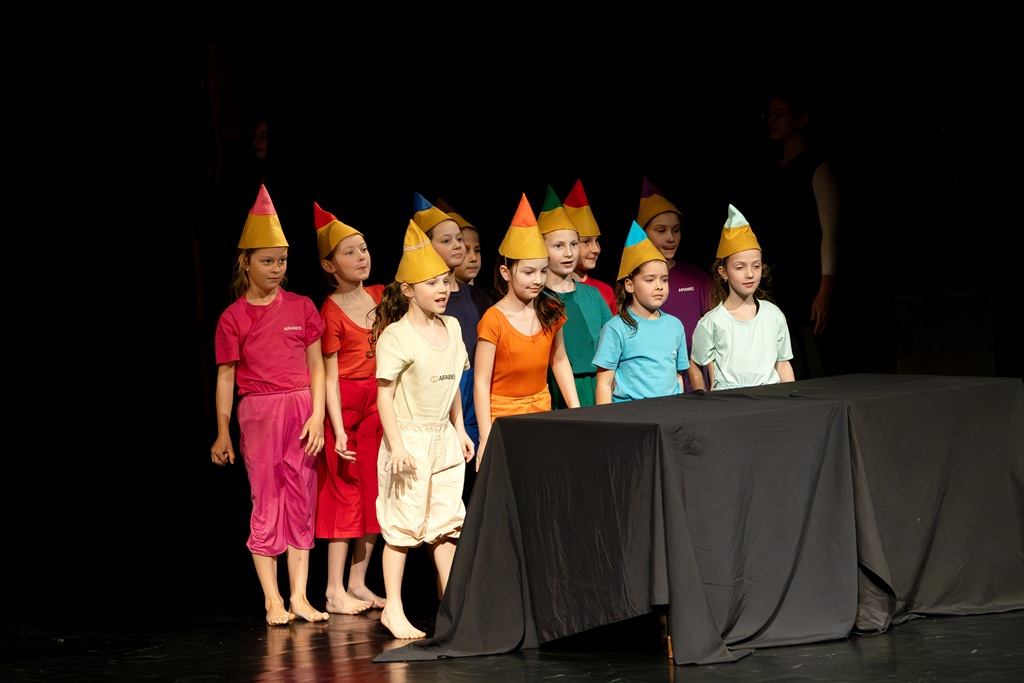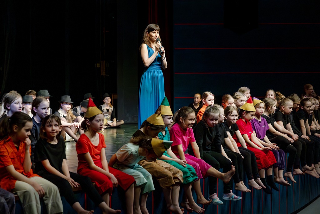 Třebíč. Divadlo Pasáž – velký sál. Žáci a učitelé tanečního oboru. Organizace představení – Mgr. Marika Indrová.