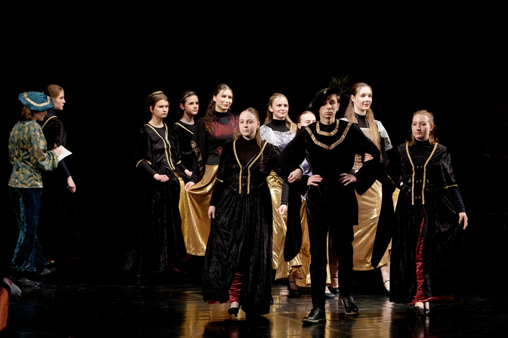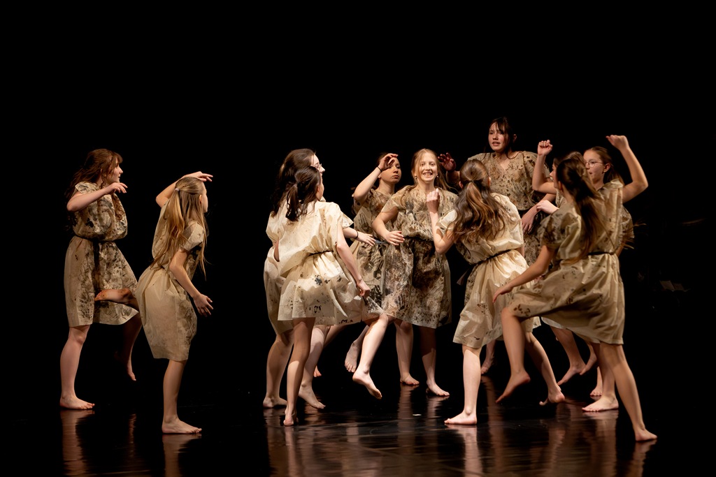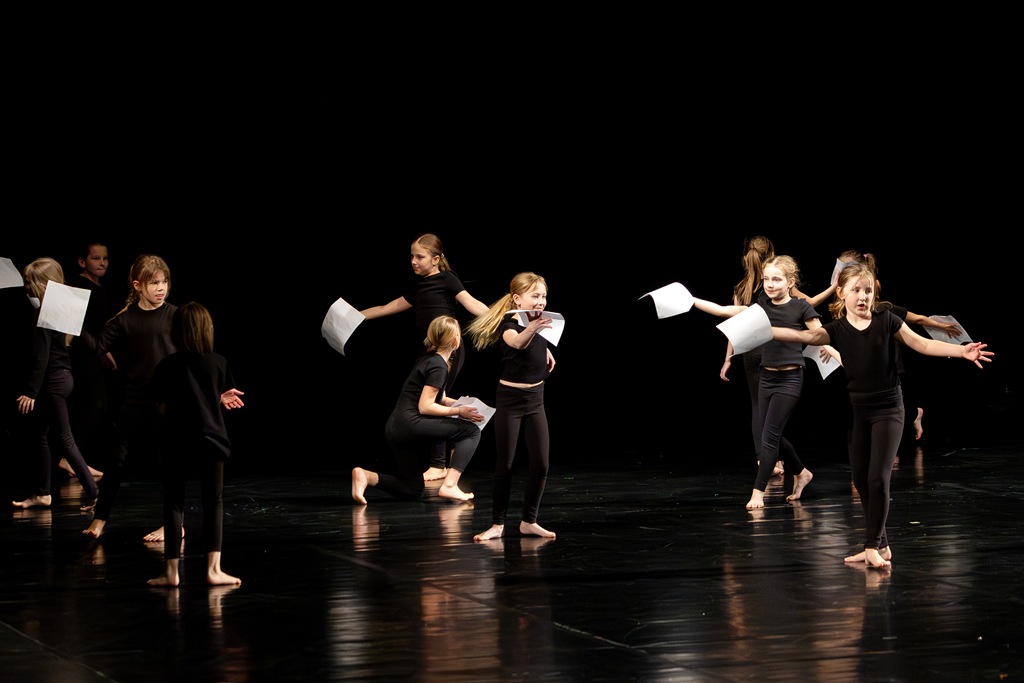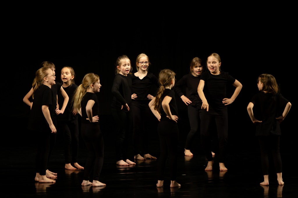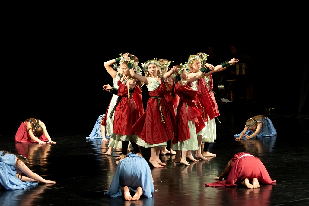 Třebíč. Divadlo Pasáž – velký sál. Žáci a učitelé tanečního oboru. Organizace představení – Mgr. Marika Indrová.