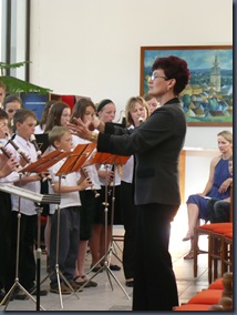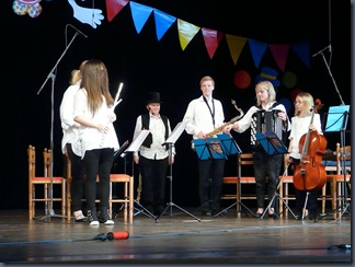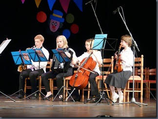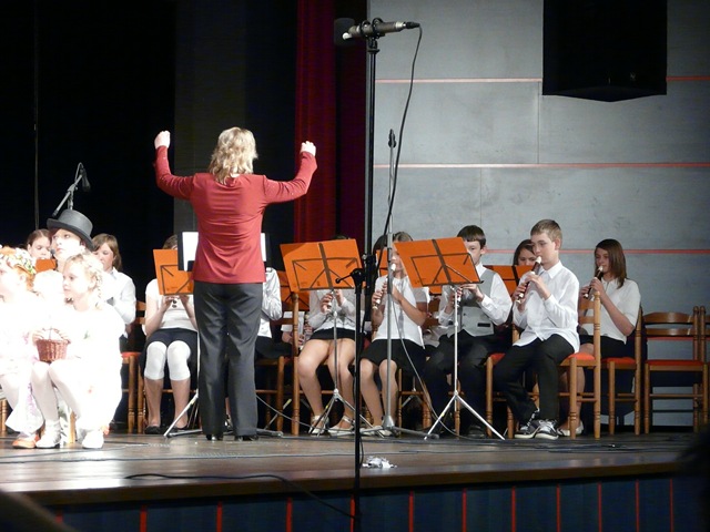 Koncertní sál ZUŠ. Výchovný koncert pro ZŠ. Pěvecký komorní soubor Vladimíry Žaludové, malý flétnový soubor Alice Matouškové a dechový soubor Petra Matouška.
