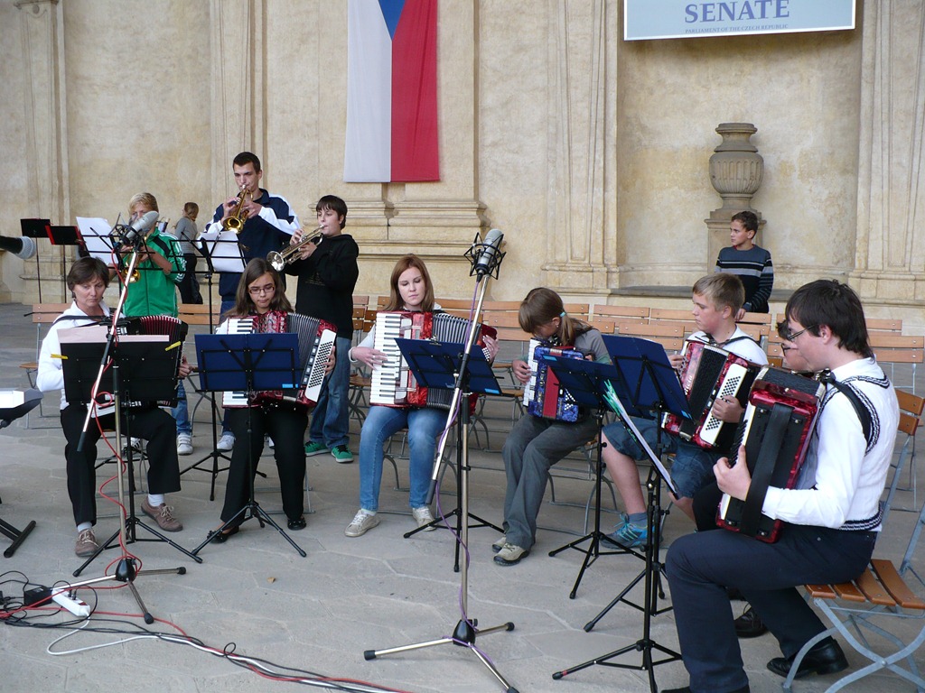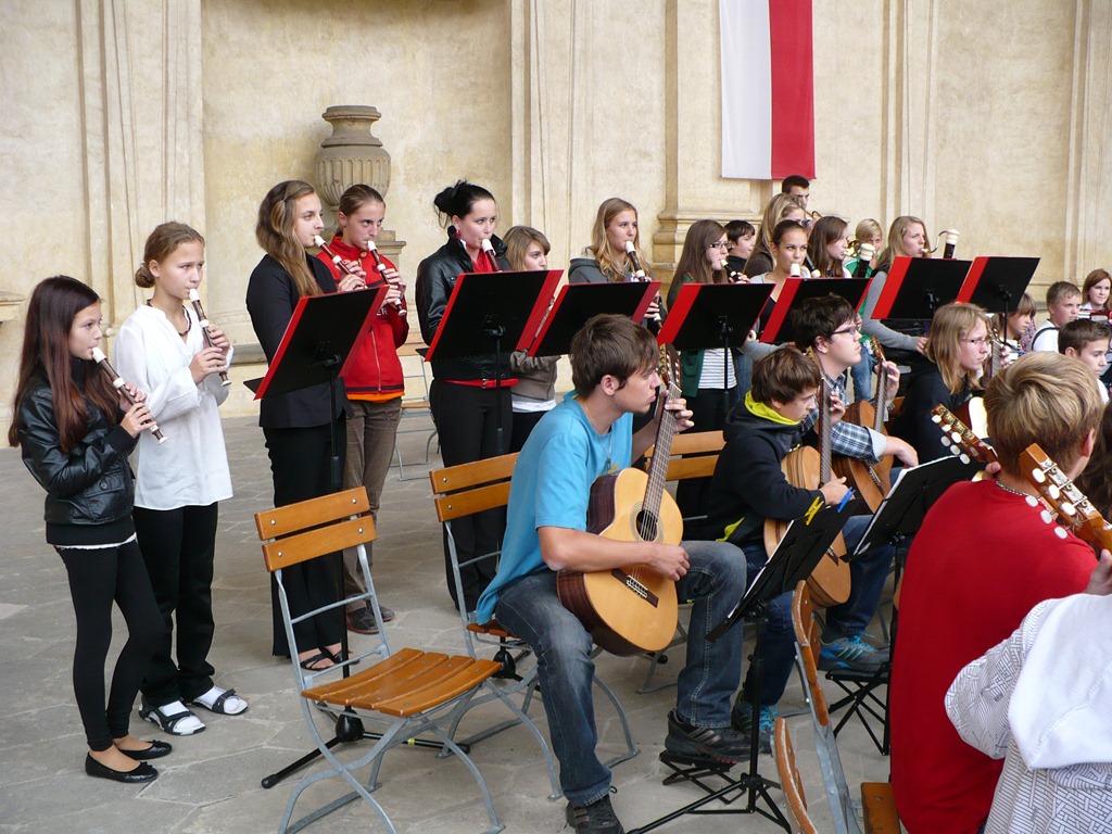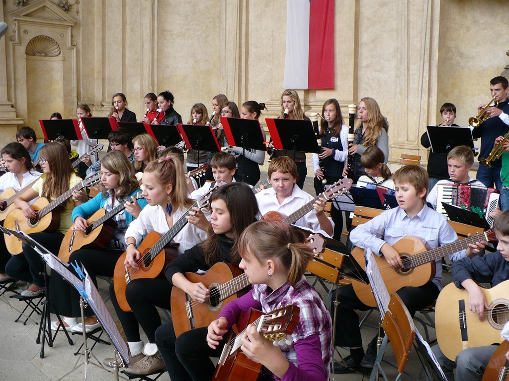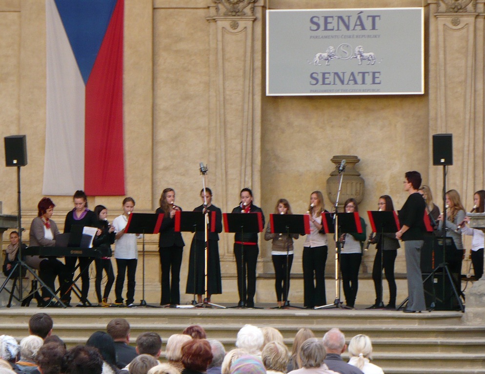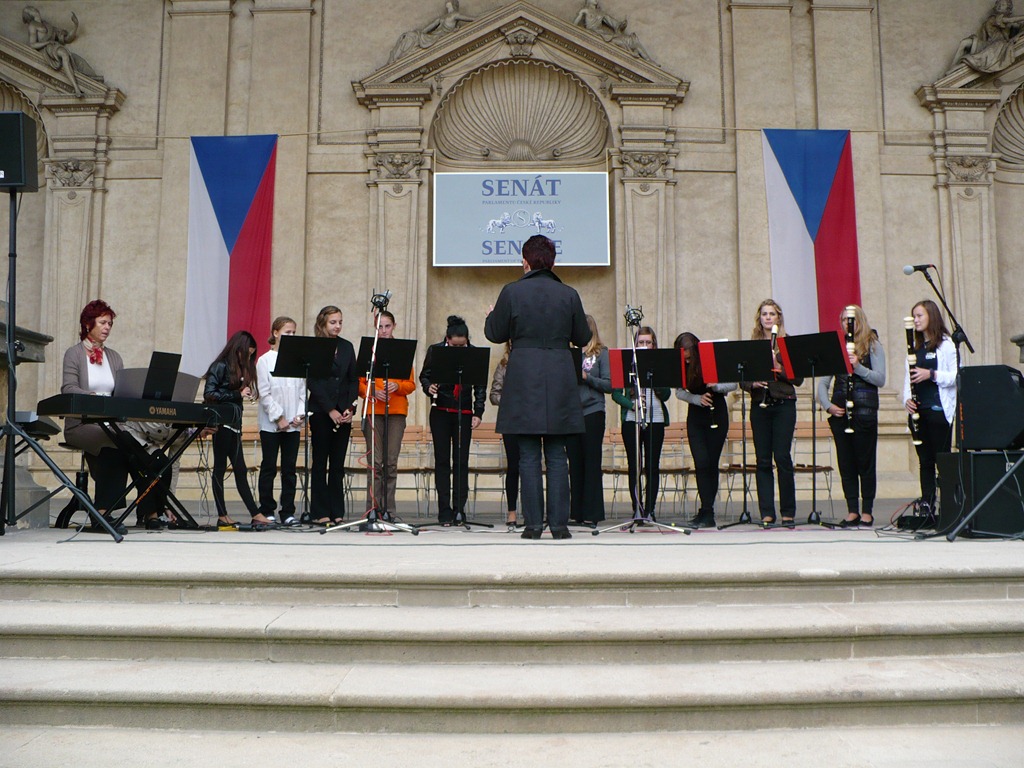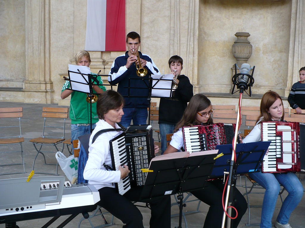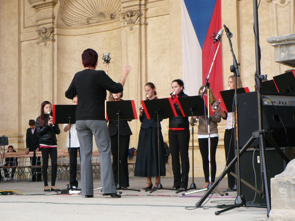 Karlovo nám. Třebíč. Zdravé město – žáci Mgr. Dany Fialové, Petra Matouška, The Small Stone Band.