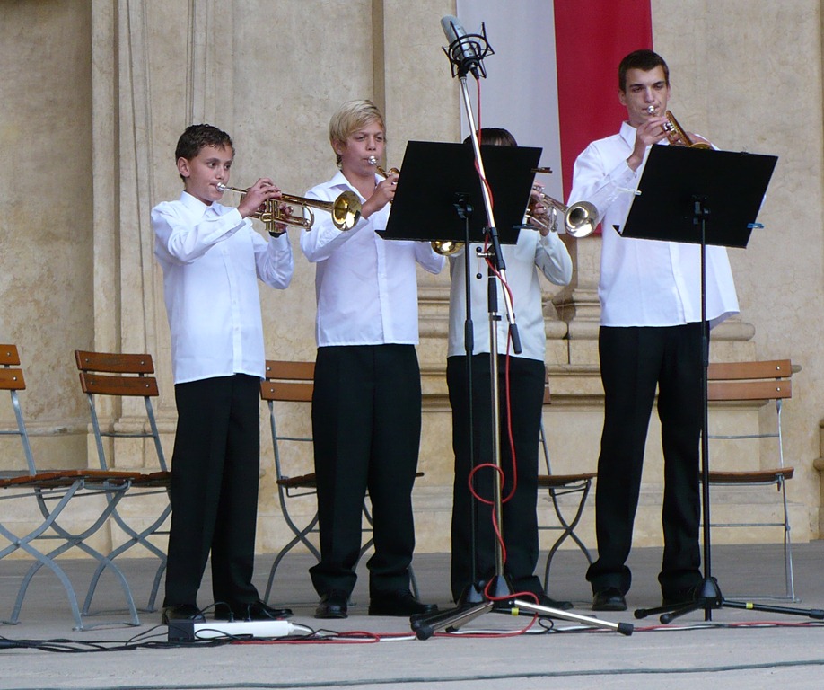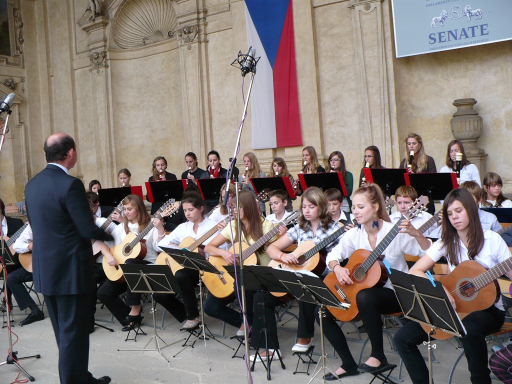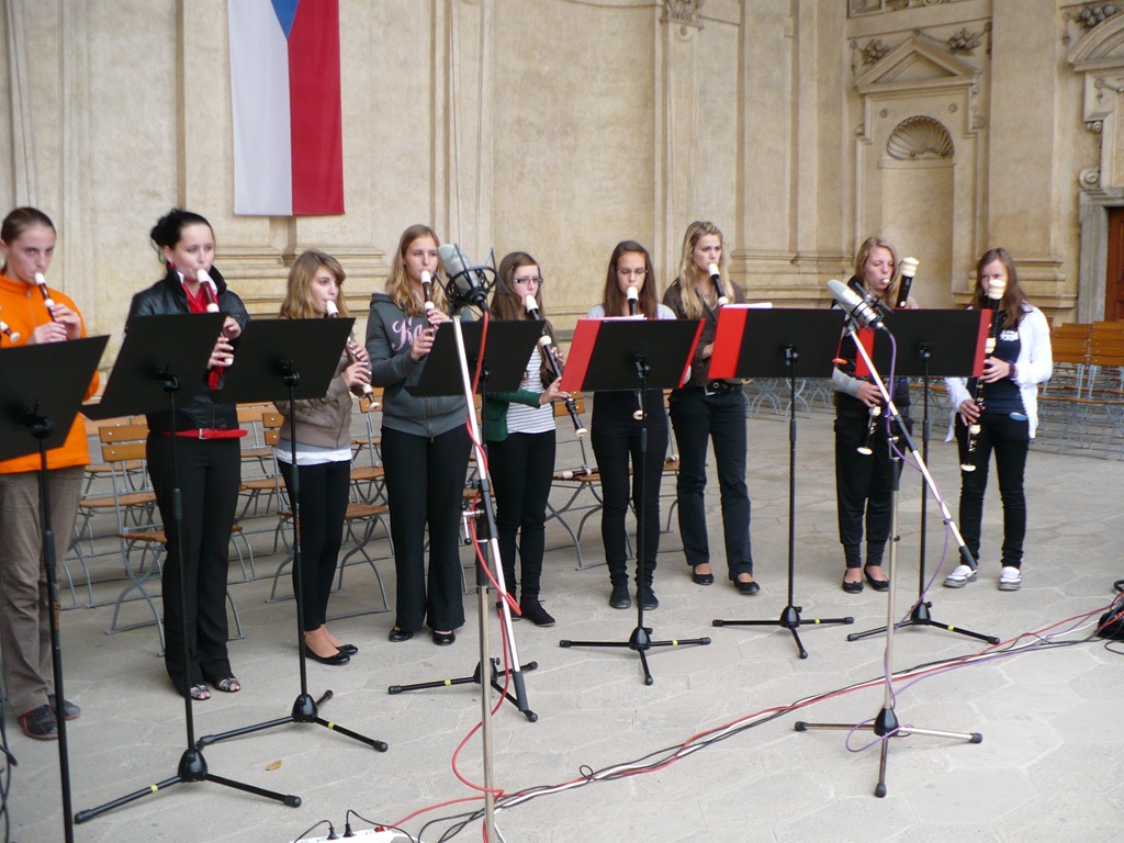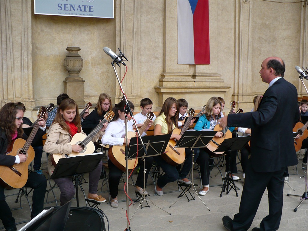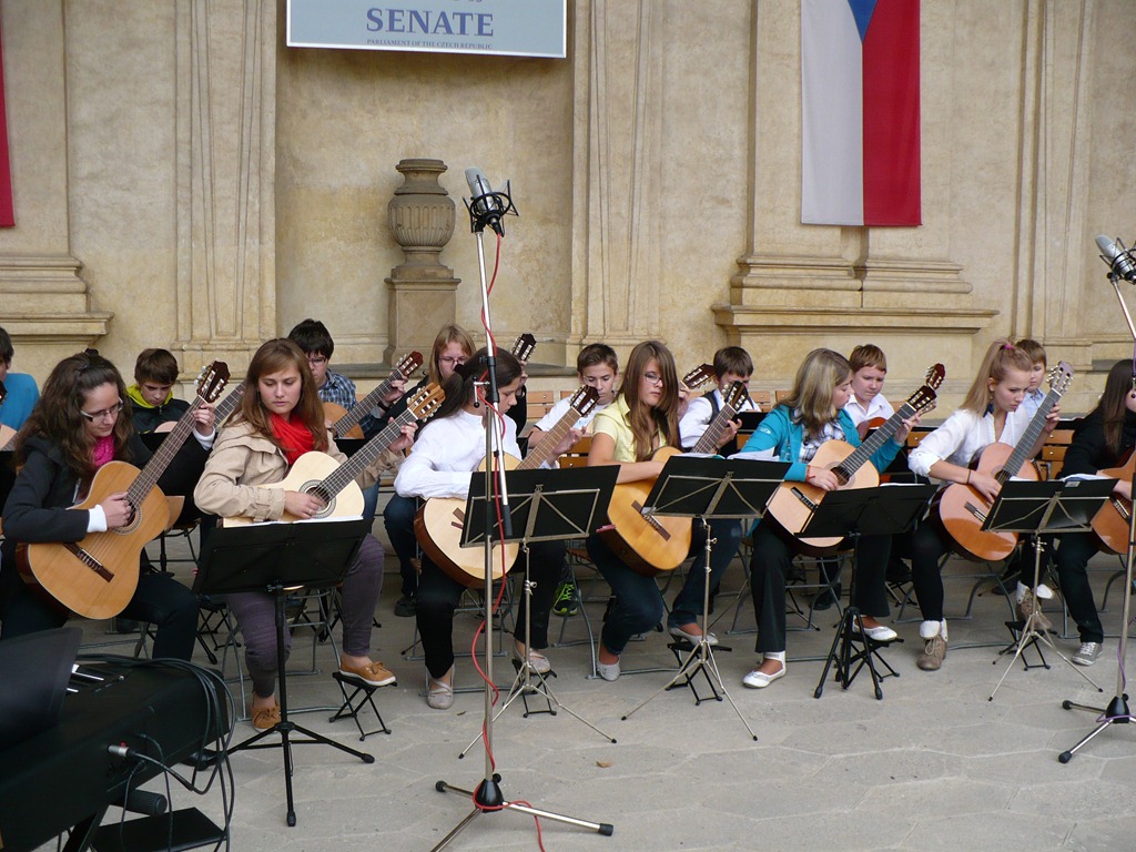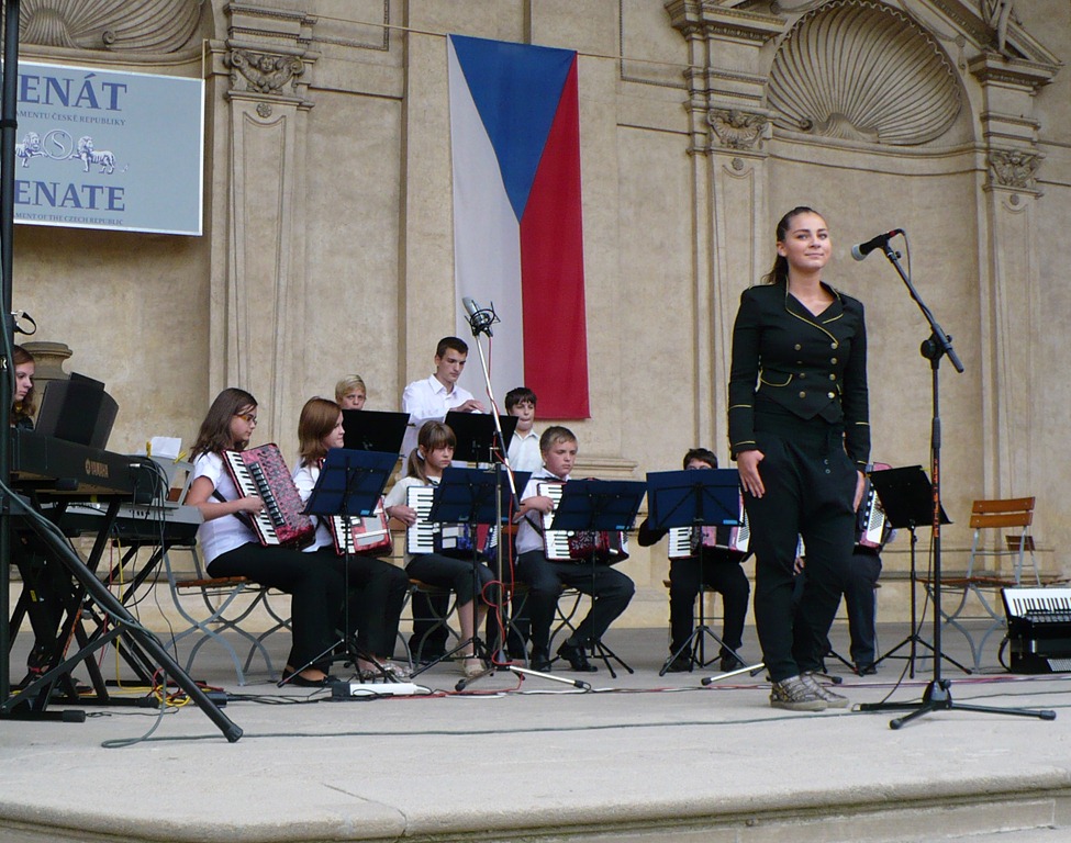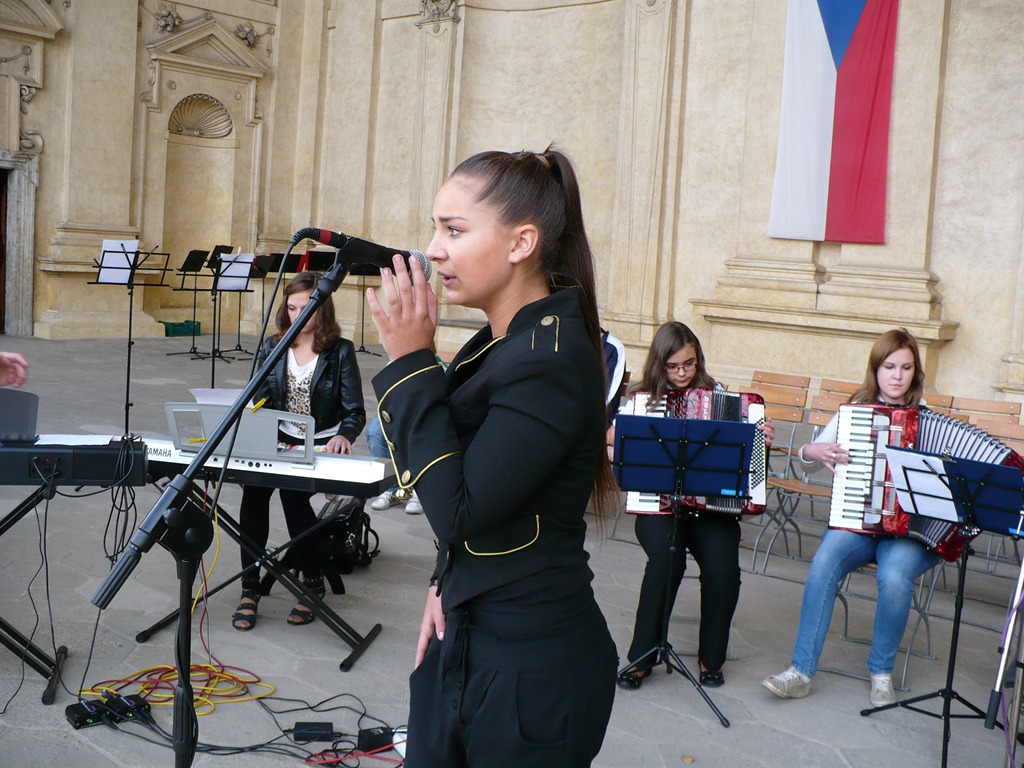 Karlovo nám. Třebíč. Zdravé město – žáci Mgr. Dany Fialové, Petra Matouška, The Small Stone Band.