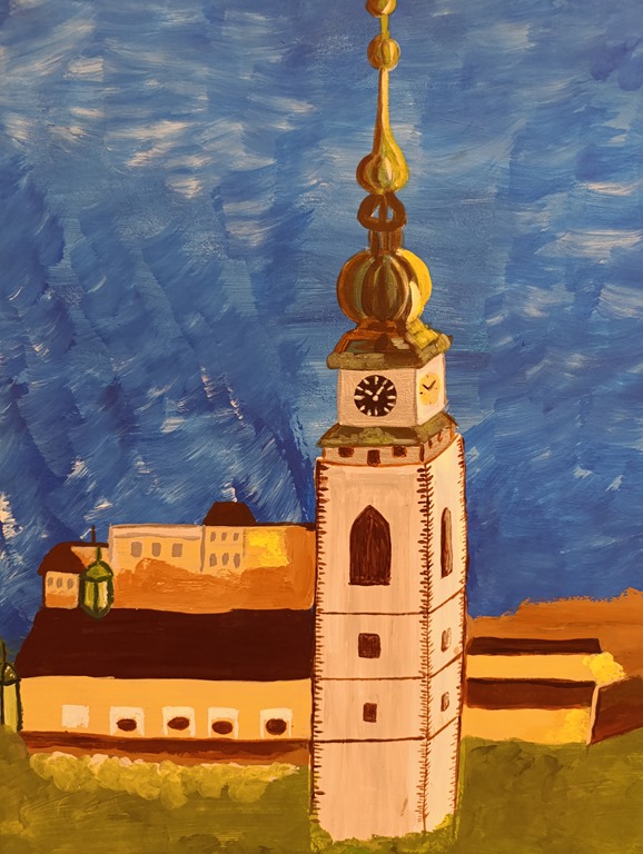 Třebíč. Divadlo Pasáž – šatna. Stálá výstava výtvarných prací ZUŠ Třebíč. Organizace projektu – BcA. Jakub Noha. 31. srpna 2024 – 31. srpna 2025.
